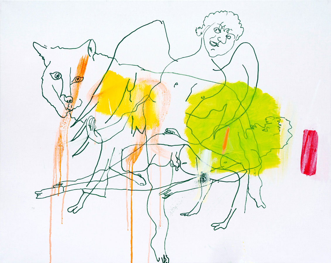 Es sind nicht die Farben, sondern solche impulsiven Zeichnungen, mit denen Helga von Jena ihre Bilder beginnt. Dabei lässt sich die Künstlerin von Motiven z. B. aus Zeitungen und von Fotografien inspirieren.