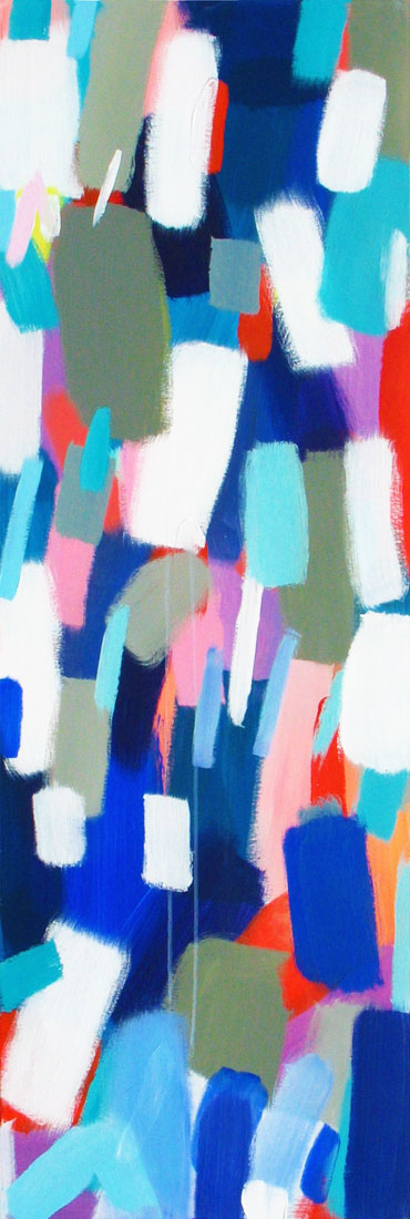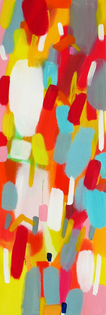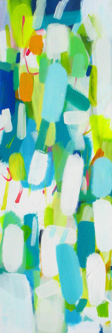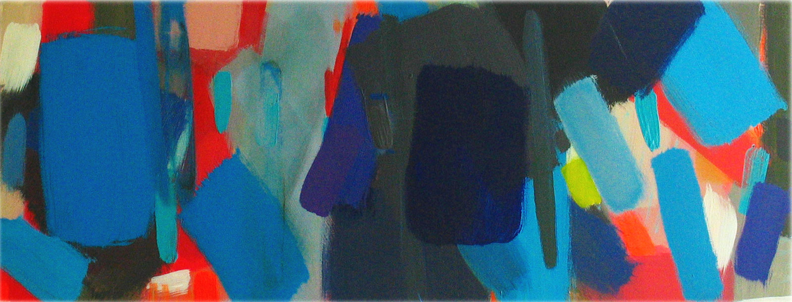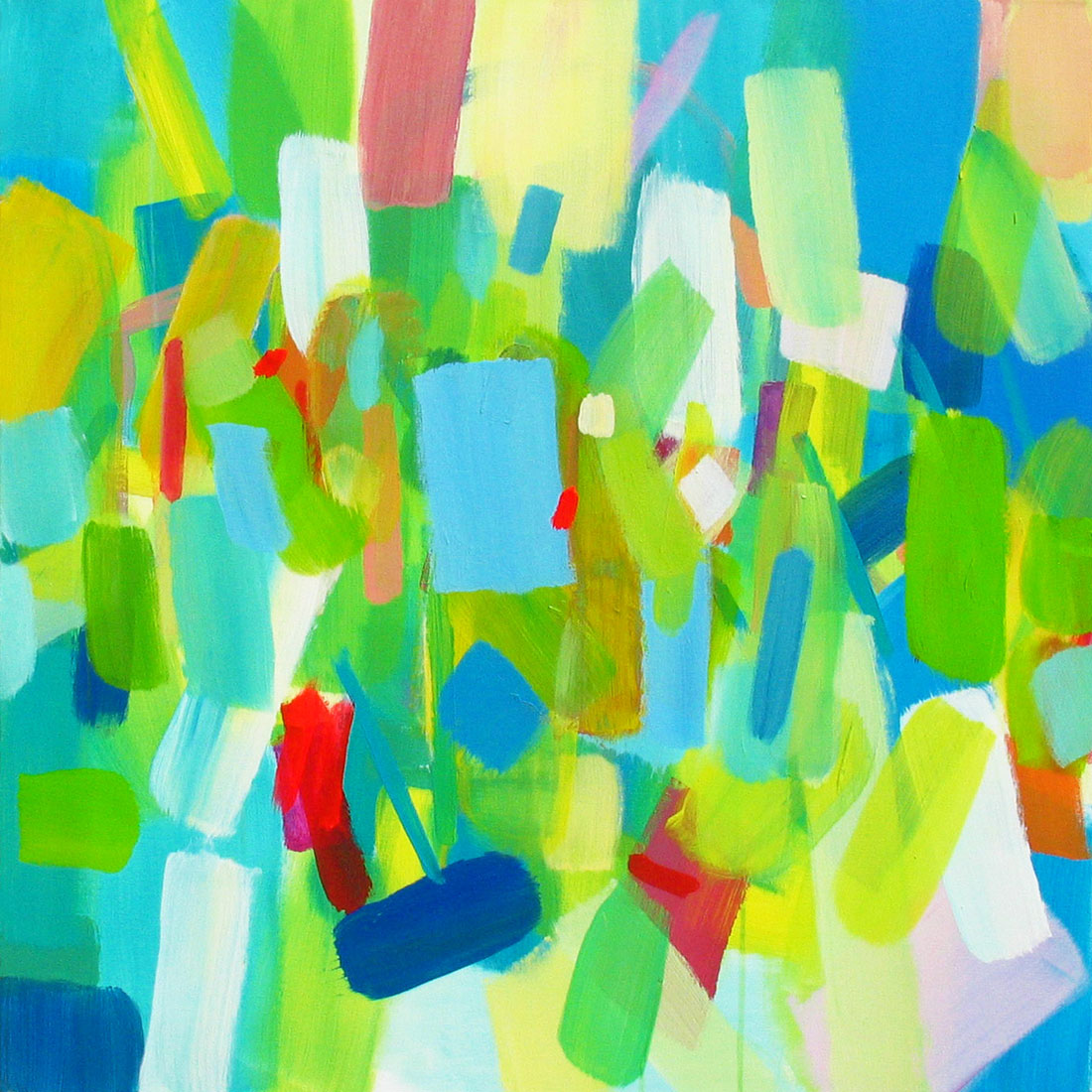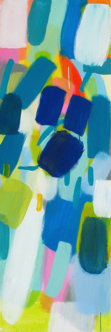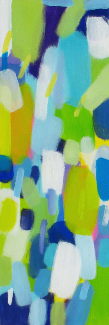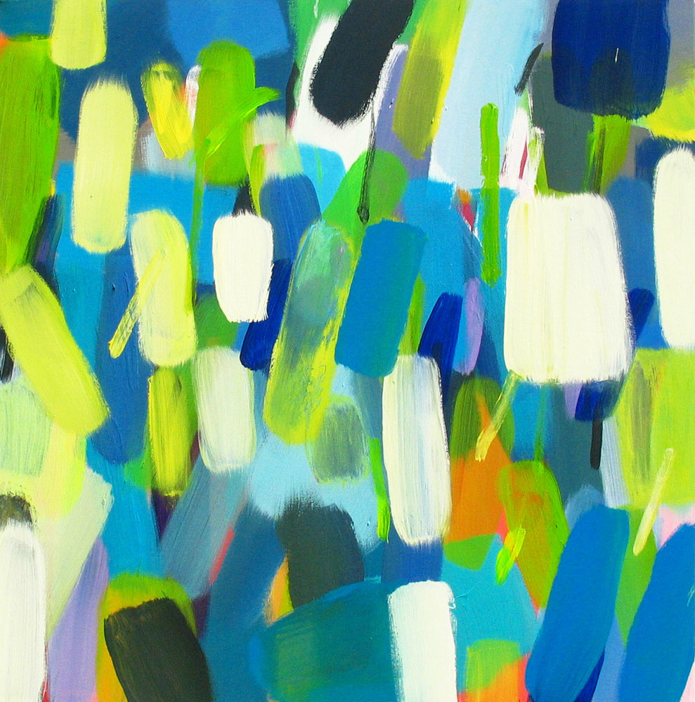 Wollte man Helga von Jena kunsthistorisch einordnen, müsste man sie mit dem Etikett „Informell“ versehen. Mir kommt jedoch immer auch etwas anderes in den Sinn: Auf mich wirken ihre Gemälde, die so offen sind und auch nicht begrenzt durch einen festen Rahmen, wie ein Blick auf die Bestandteile der Kunstwelt, als würde man mit einer starken Lupe vor einem Bild von Monet, Sisley oder Seurat stehen und ihre lichtdurchfluteten Landschaften und Stadträume um ein Vielfaches vergrößern. Farbe liegt neben Farbe, überlagert andere Farbfelder, webt ein Muster aus Flecken, das jedoch immer transparent und luftig bleibt.