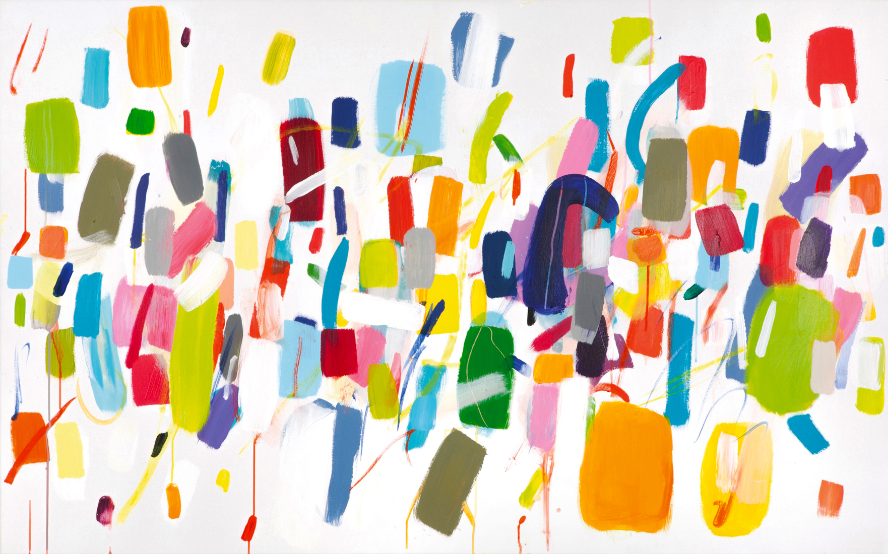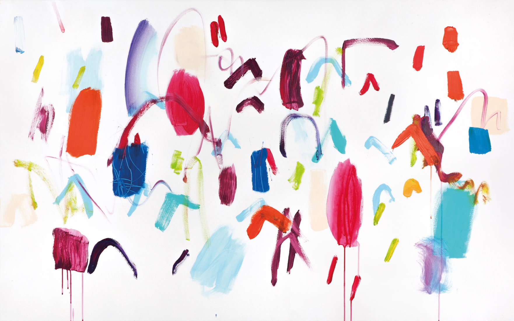 Wie die melodischen Phrasen einer musikalischen Komposition, die unterschiedliche thematische Strukturen gleichzeitig als gleichwertig nebeneinander geführte Themen oder als Begleitung einer Melodie im Hintergrund zum Erklingen bringt, so lassen sich diese Bilder durchaus als bildnerische Kompositionen transparent geschichteter Ebenen mit variierenden Zeichenmelodien beschreiben. Ihre Bewegungen treten in einer räumlichen Gleichzeitigkeit in Korrespondenz zueinander, verflüchtigen sich wie eine musikalische Phrase und ermöglichen der Betrachtung immer wieder neue visuelle Bezüge. Musik und Tanz begründen den Wirklichkeitsbezug der Gemälde der Helga von Jena als die der ästhetischen Rezeption zugrundeliegenden Erfahrung unseres Sehens im Raum.