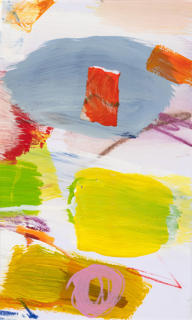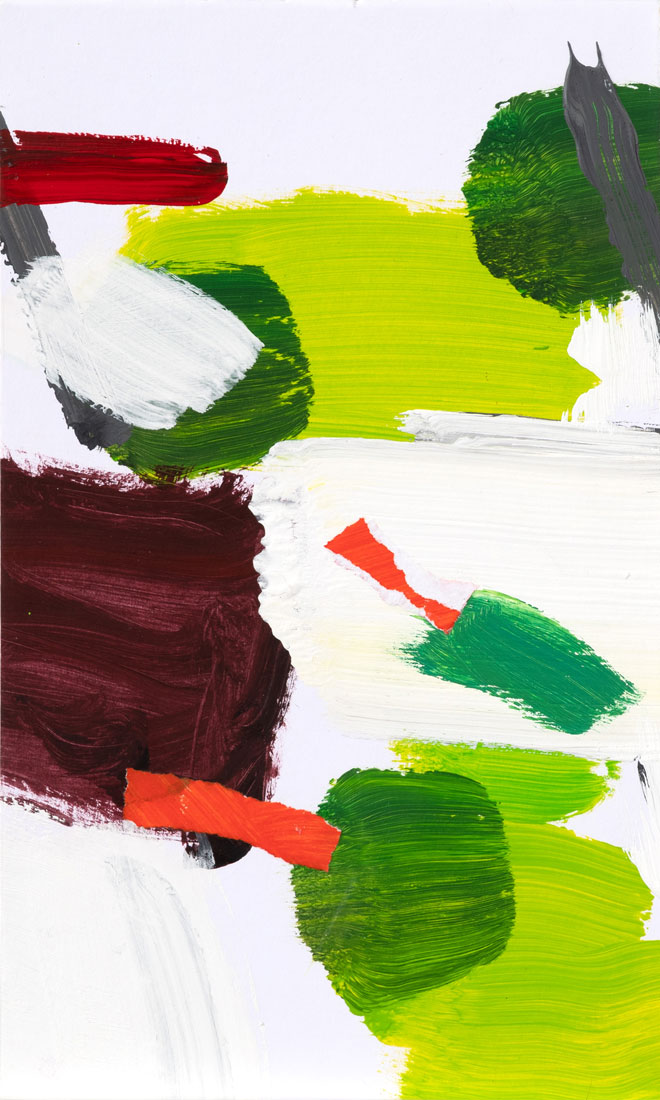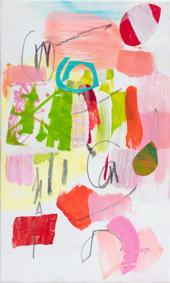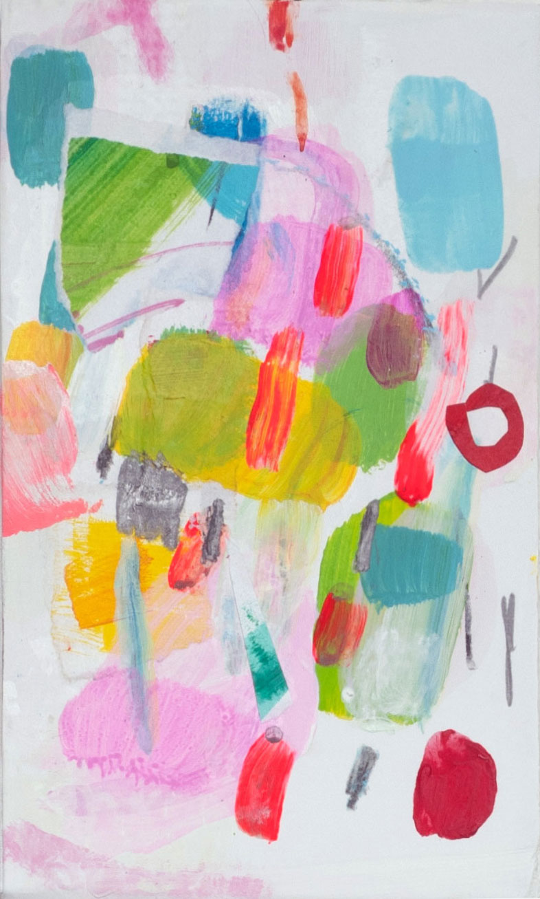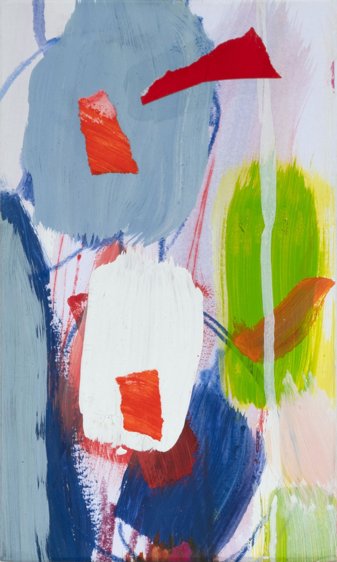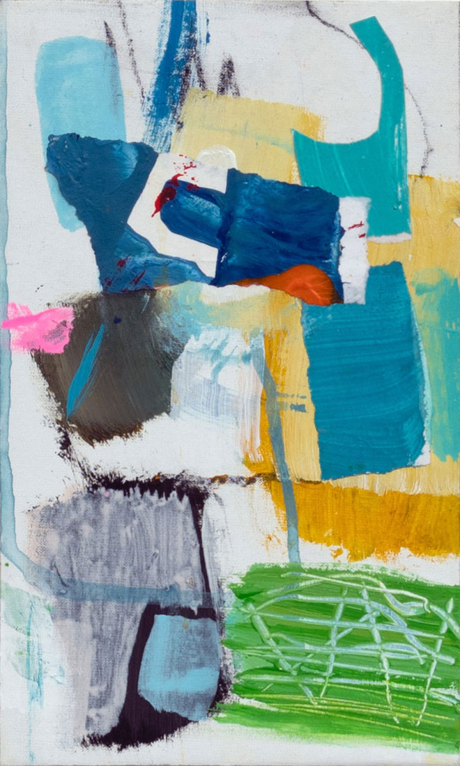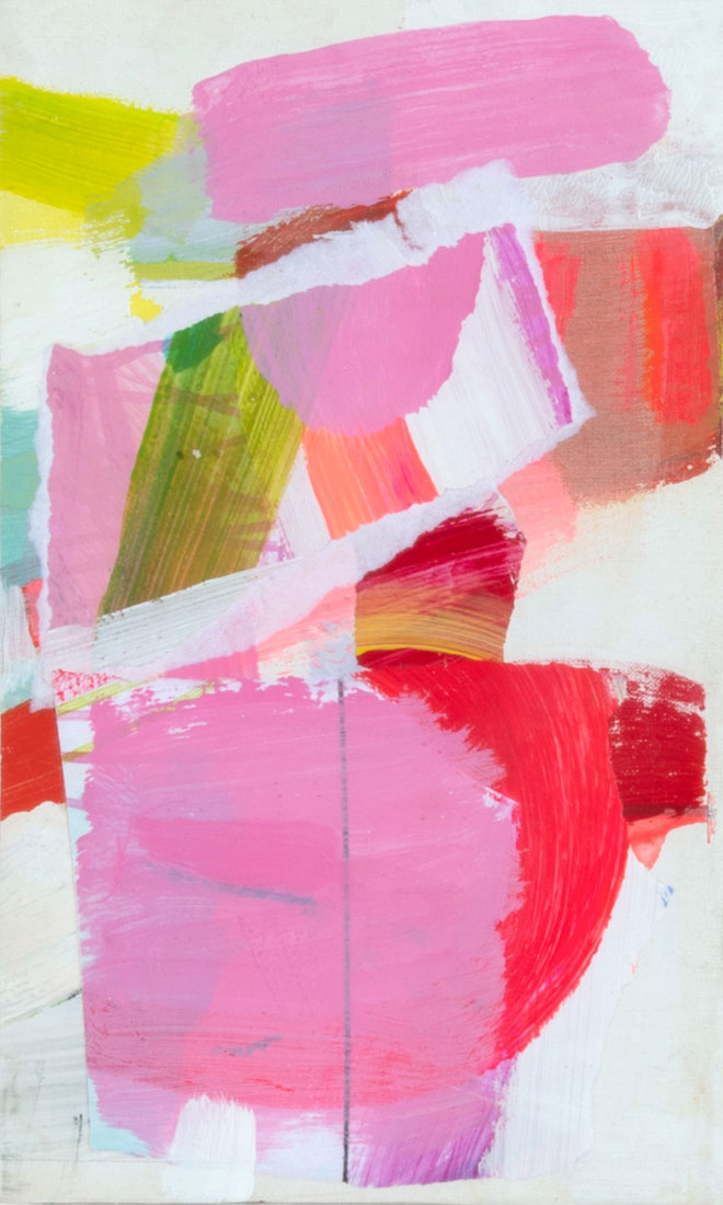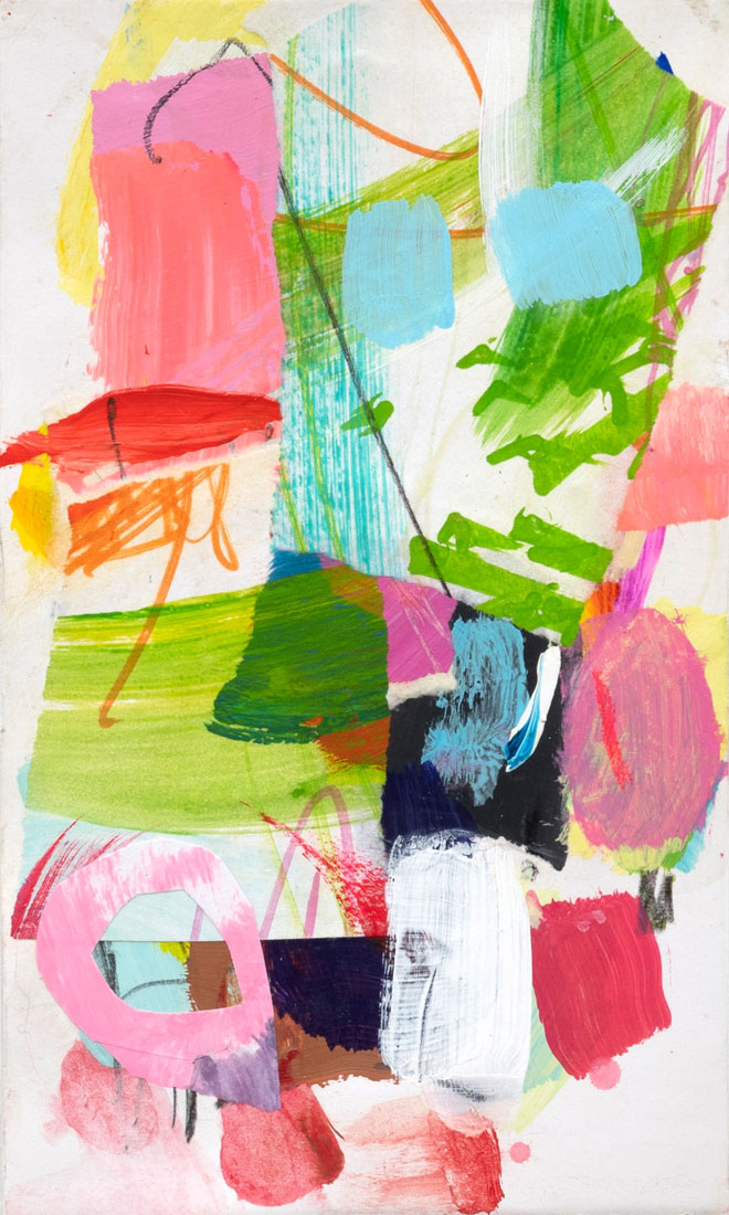 Kleinformatige Collagen auf Karton (25×15 cm) scheinen unvollendet, deuten nur etwas an, regen zu individuellen Gedanken, Gefühlen und Assoziationen an.